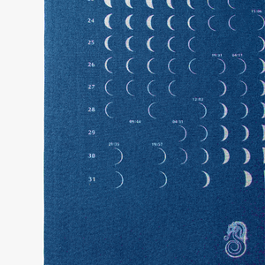 A handcrafted moon calendar. Dyed using the traditional Akuhakkodate indigo technique.